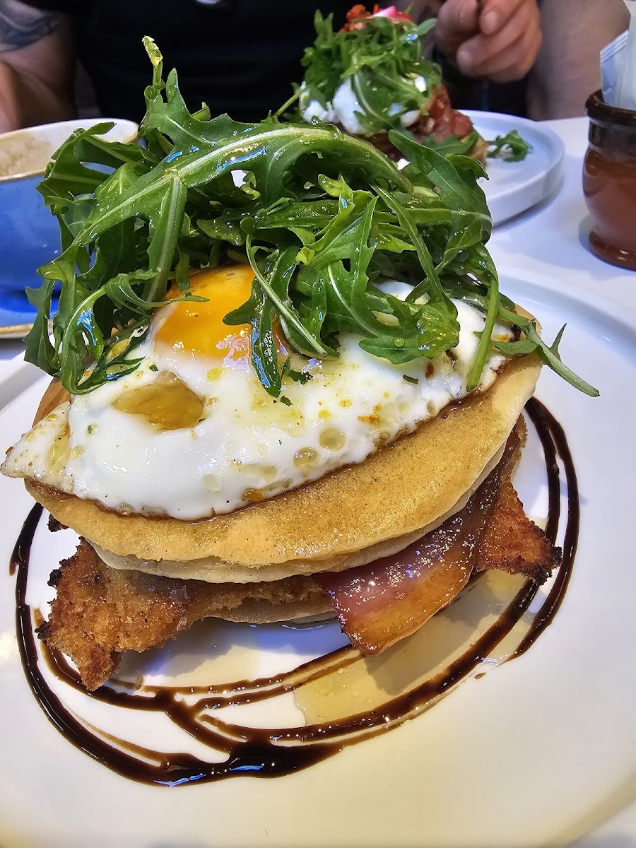 This bakery does not stop at baked goods. The croissant sandwich and chicken pancake tower show a playful side to the menu. These dishes are filling and layered with flavor, ideal for late morning or early afternoon meals.